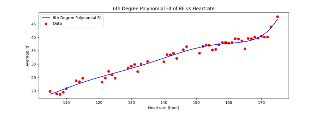 Fig 3: Binned heart rate vs average RF in each bin with 6th degree polynomial fit.